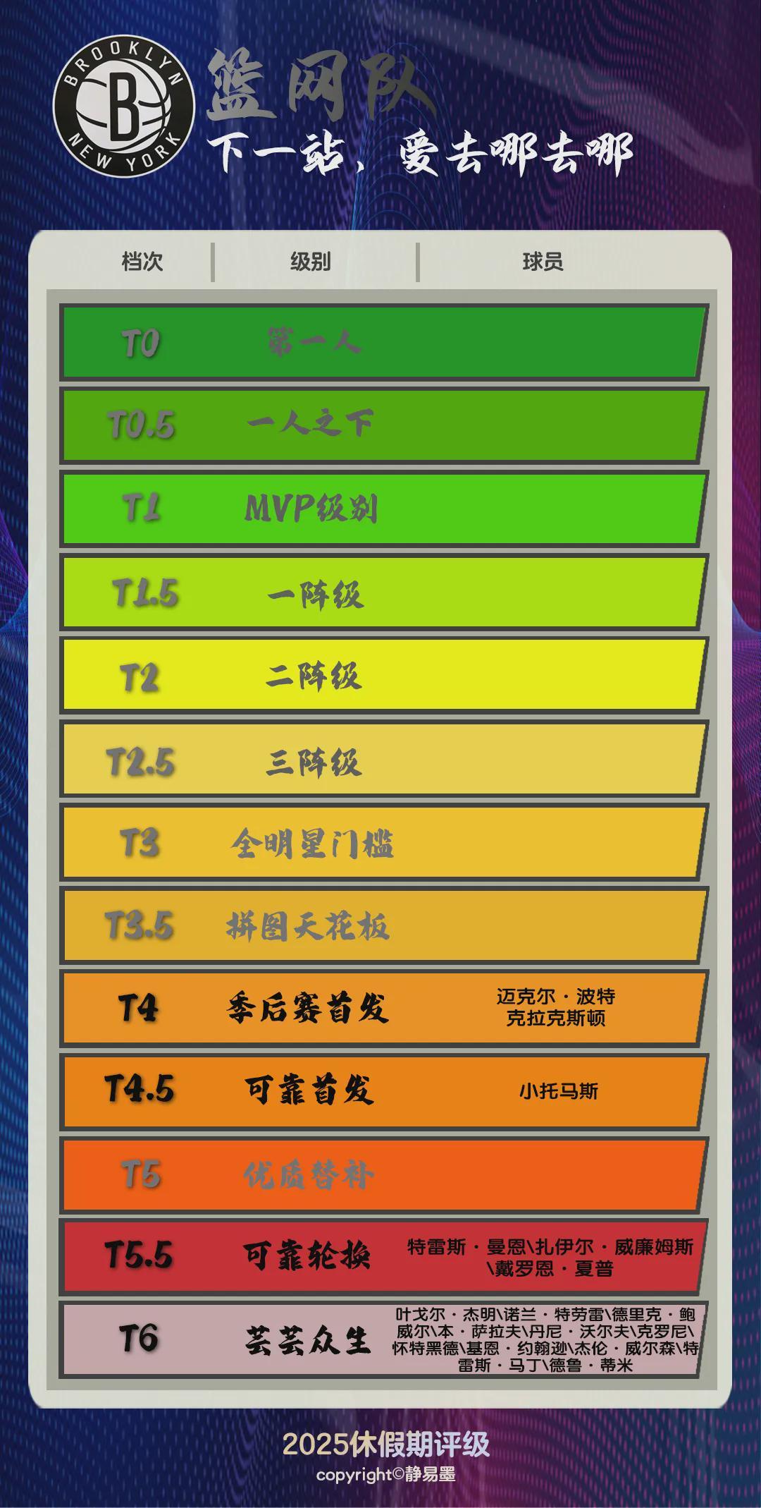 当然了,篮网25-26赛季是要开摆的,他们并不在乎成绩。篮网一年5首轮秀入账,加上原来手里就有的怀特黑德、克劳尼,合计拥有一二年级的新秀7人,就算是前几年新秀开超市的雷霆怕是也没这么炸裂,集中在19-21岁的新兵蛋子阵列可谓毫无梯度感可言。篮网的老将呢?持球just干的托马斯,接球just干的波特和克拉克斯顿,为原本就青春气盛的班底又添了一份喜庆。想一想都闹腾。